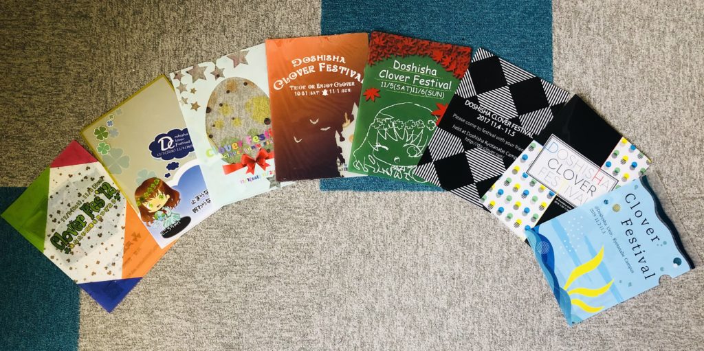 今年のテーマはDive into Clover!!と言うことで海をイメージしたデザインでお届けします。歴代クリアファイルを並べてみました。あなたはどれが好きですか?