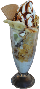 フレンズの曲「元気D.C.T ~憧れのマチュピチュ~」とチョコバナナクレープから着想を得たパフェ。
