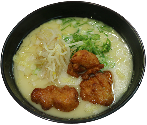 フレンズの曲「夜明けにメモリー」をもじった1品。フレンズ案件の、家系ラーメンにガーリックバター風味の唐揚げがトッピングされた高カロリーなメニューです。是非ご賞味あれ!